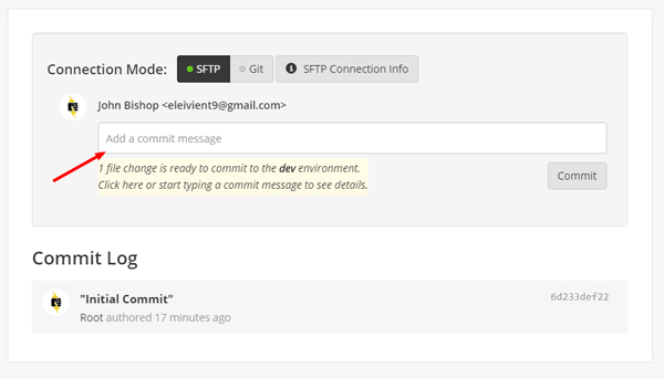 (*note: After the Drupal install we will have have 1 file to commit SFTP mode. You will not be able to switch to Git mode until this change is commited)